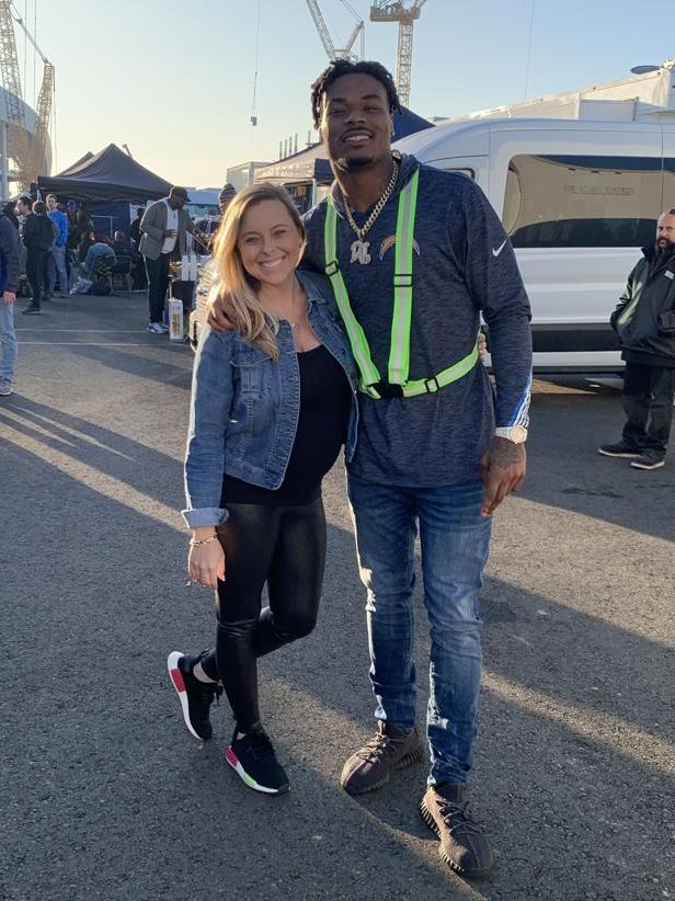 NFL agent Savannah Foster with San Diego Chargers safety Derwin James, outside SoFI Stadium, 2020.